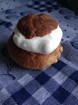 Lõika jahtunud kuklitelt pealt "mütsikesed", pane vahele vahukoor ning lase heal maitsa.